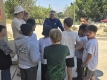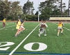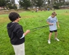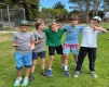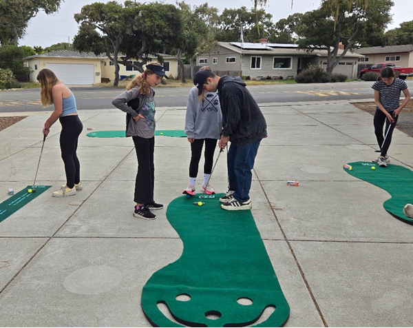 An unidentified 7th-grader attending the 2025 summer camp shows perfect form on her golf swing while demolishing an apple on the tee.